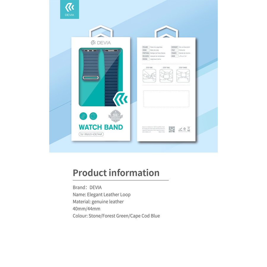 Devia Apple watch Leather Loop 42/44/45/49mm Blue