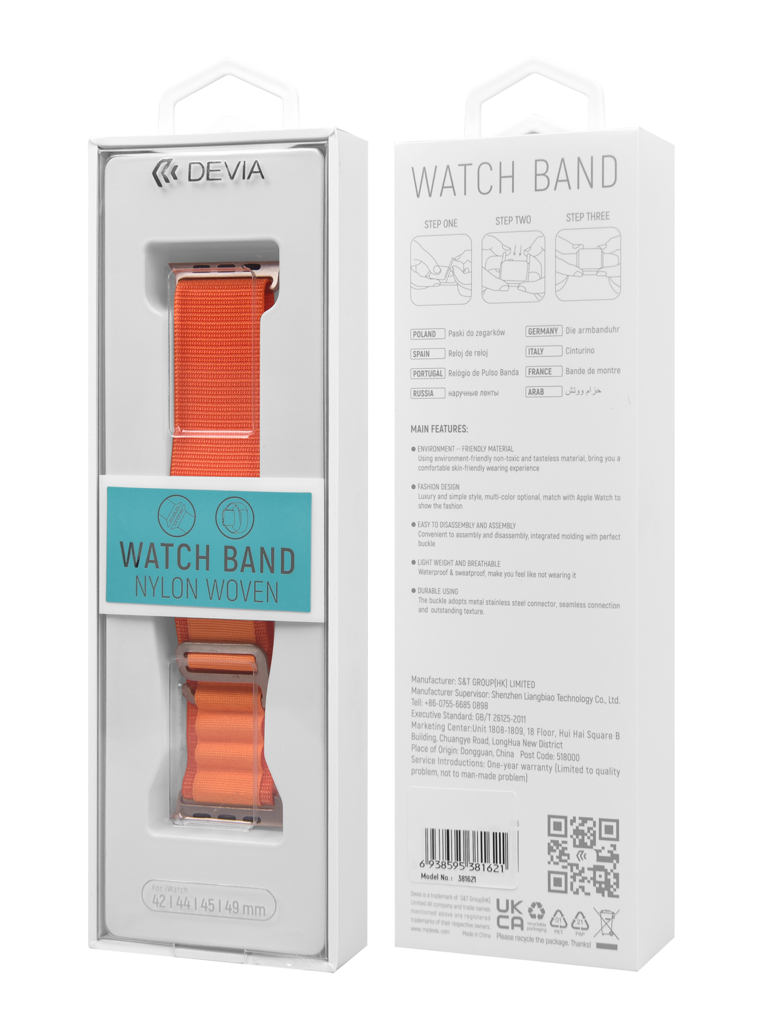 Apple Watch 42/44/45/49mm Orange- Deluxe Series Sport5 Nylon Strap